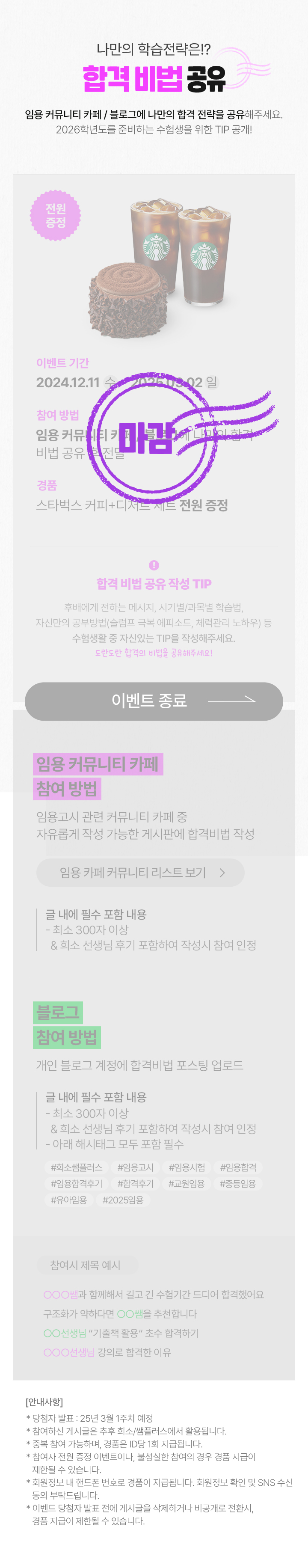 ¡¤ Ä«Æä °Ô½Ã±Û ȤÀº ºí·Î±× °Ô½Ã±Û ºñ°ø°³ ¹× »èÁ¦ ½Ã¿¡´Â À̺¥Æ® Âü¿©·Î °£ÁÖµÇÁö ¾Ê½À´Ï´Ù.